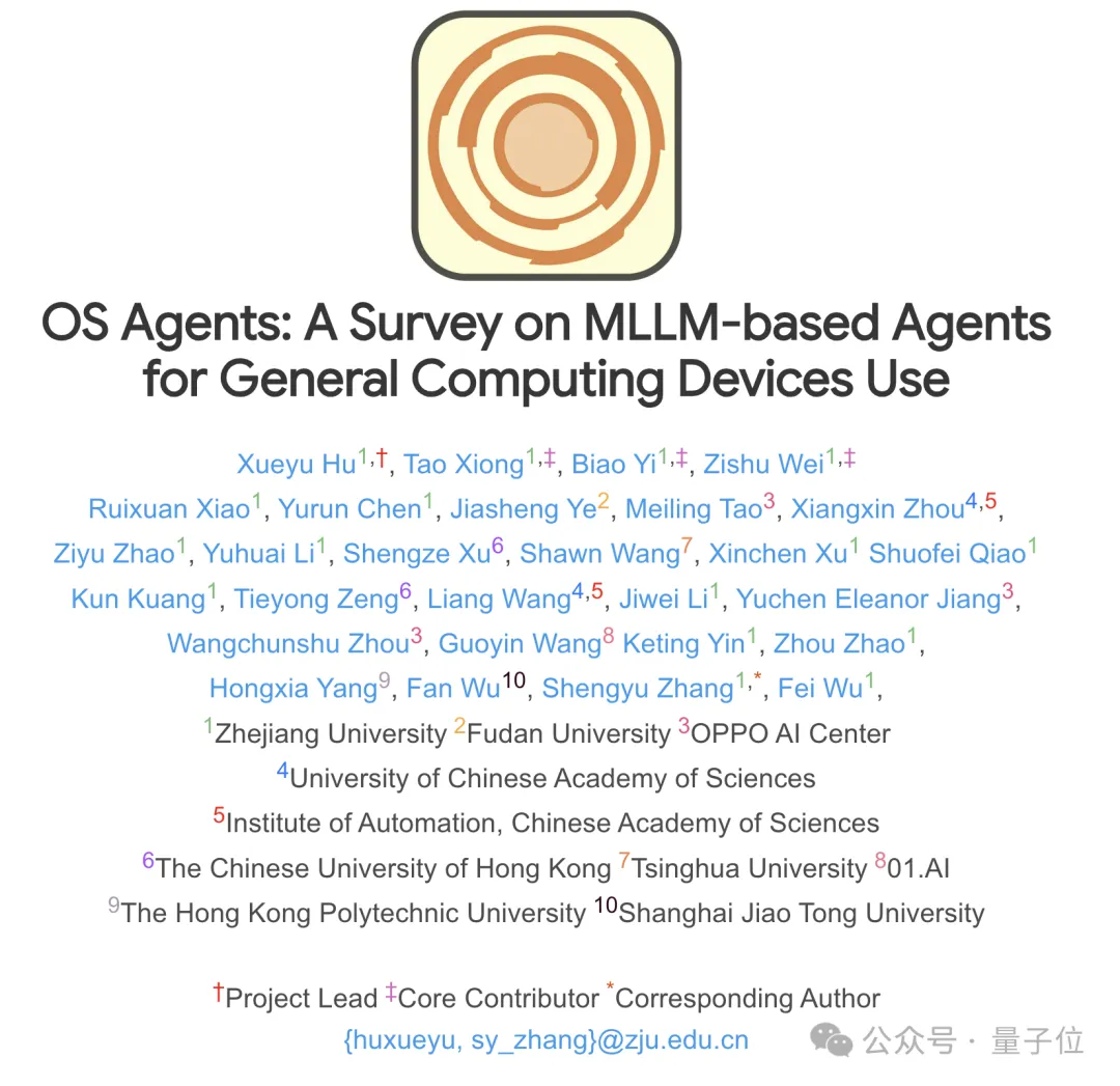 最近,浙江大学联手OPPO、零一万物等十个机构共同梳理了一篇综述文章《OS Agents: A Survey on MLLM-based Agents for General Computing Devices Use》,不仅详细解读了OS Agents的硬核技术构造,还盘点了它们的评估方法和未来挑战。