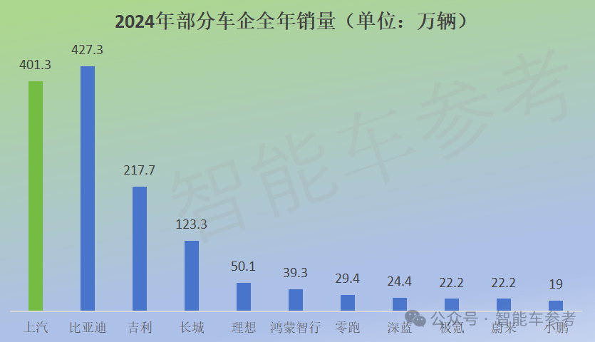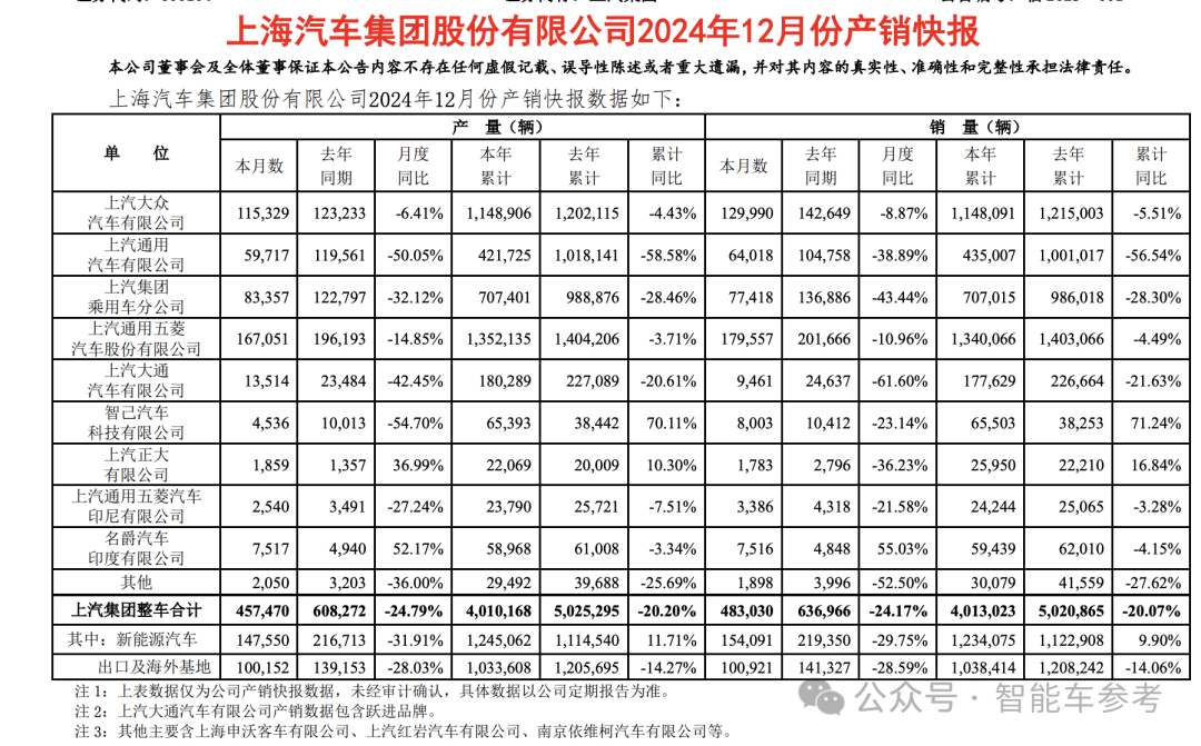 最近,上汽发布了产销快报,快报显示其2024年累计销量为401.3万辆,低于同期457.4万辆的产量,同比去年下滑超20%,一年少卖100万辆车。