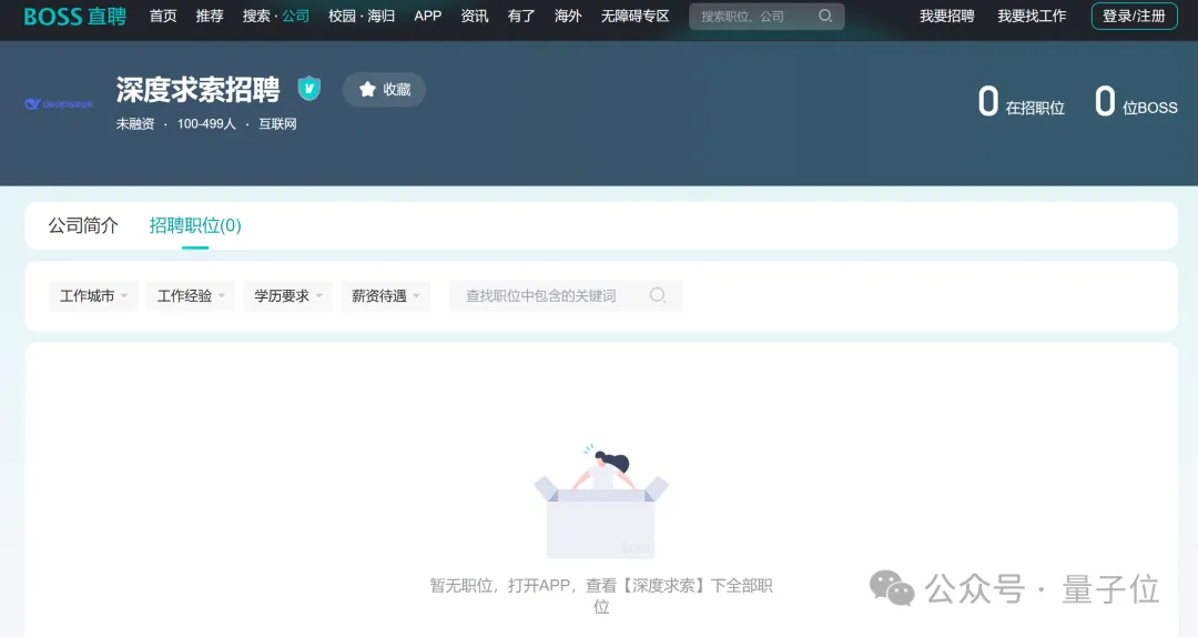 不过截至发稿前,BOSS平台上DeepSeek的招聘职位已清空,目前尚不清楚具体原因。