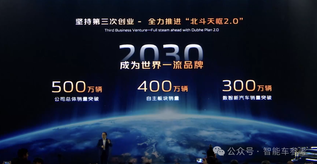然后在2030年实现总销量突破500万辆,其中自主板块占有率达80%。