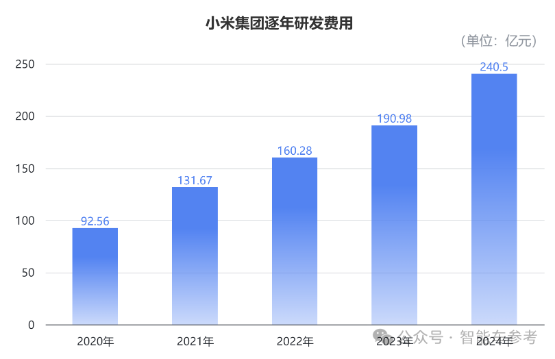 首先,就是2025年将加大研发投入,预计会增长到300亿元,同比将增长24.7%,这意味着小米在2021-2025年间,研发费用将超过1000亿元。
