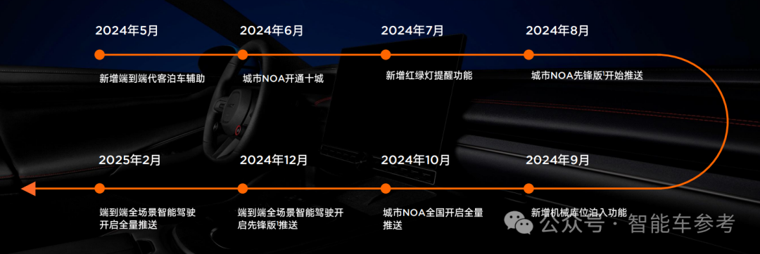 SU7从3月份上市,交付即搭载高速NOA,2个月端到端代客泊车辅助上车,7个月全国都能开的城区NOA全量推送,年底推送端到端先锋版,到今年2月,小米汽车的端到端全场景智驾——端到端+VLM系统,可实现“车位到车位”,已开启全量推送。