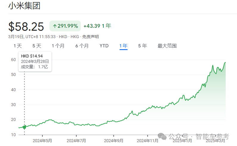 特别是汽车业务,刚上市一年,全年交付达到13.7万台,年收入已达321亿。而且小米SU7上市至今,小米的股价已经暴涨了290%,最新市值高达1.36万亿元,中国车企中当之无愧的一哥。