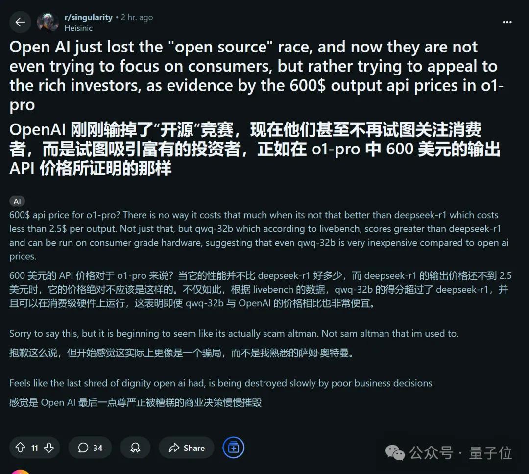 也就是说,o1-pro的高昂定价更像是OpenAI在给投资者“作秀”。