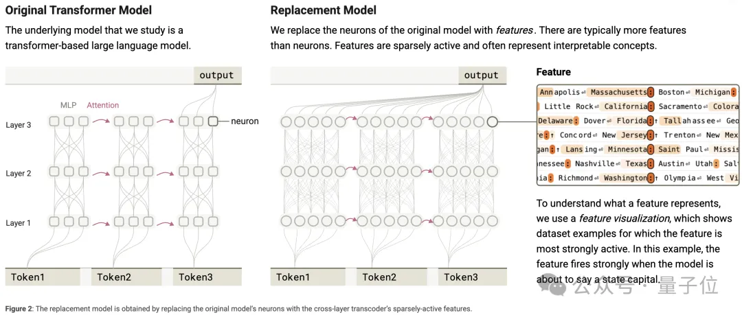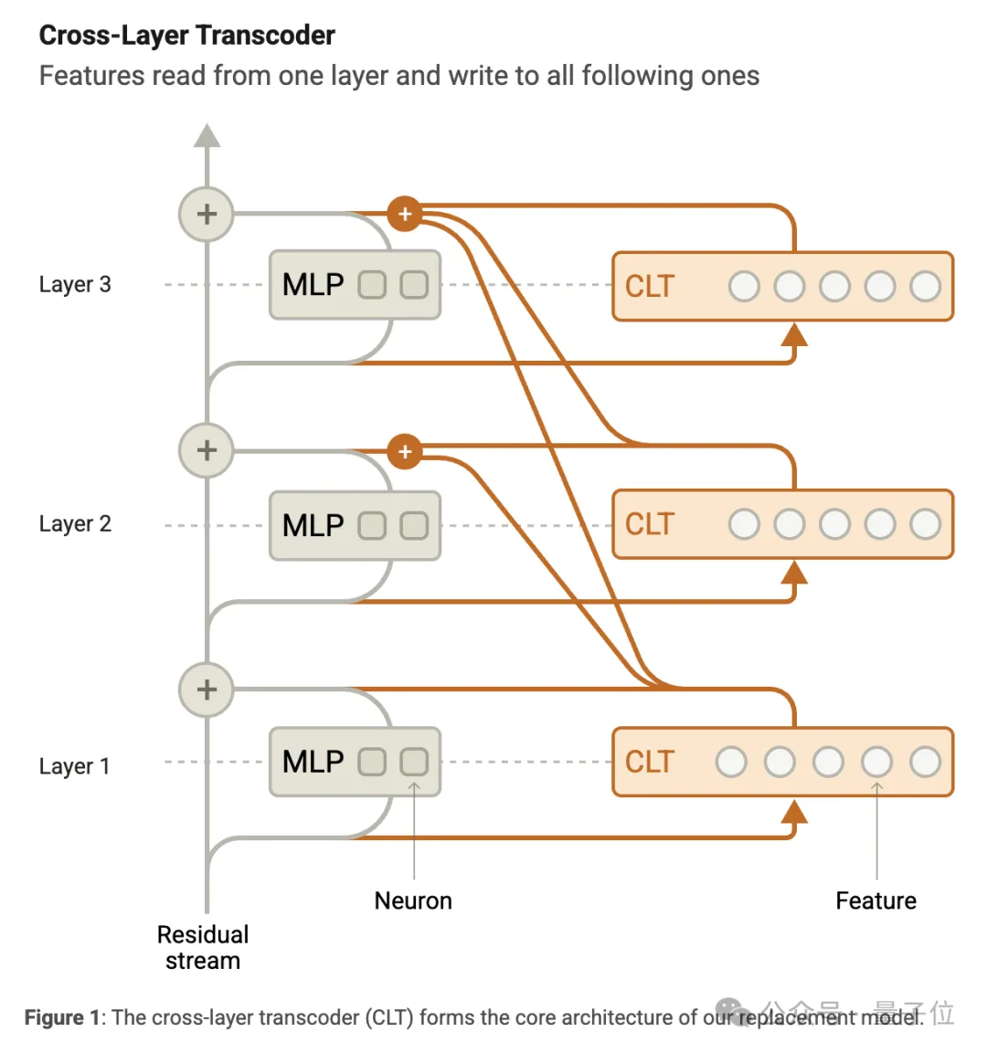 研究人员设计了CLT,它由和原模型层数一样的神经元(也就是 “特征”)构成。
