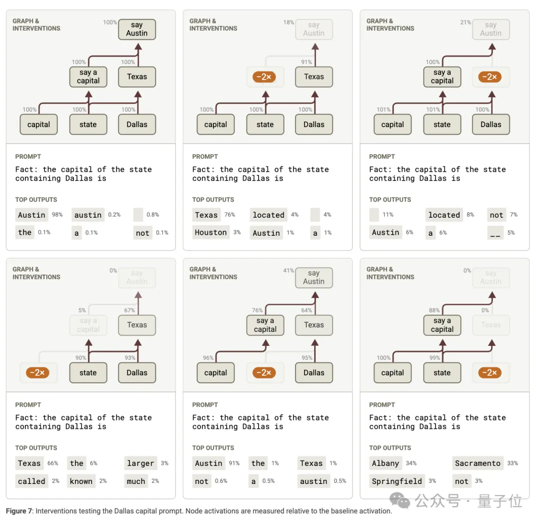 特征替换实验发现,改变模型对 “Texas” 的表征,模型会输出其他地区的首府,验证了多步推理机制的存在。