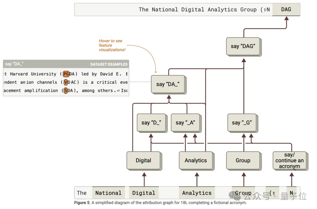 对于给定的输入提示,研究人员构建归因图来展示模型生成输出的计算步骤。