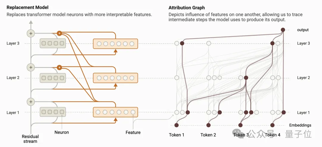 Claude团队用的电路追踪方法,核心就是通过构建可解释的替代模型来揭示语言模型的计算图。