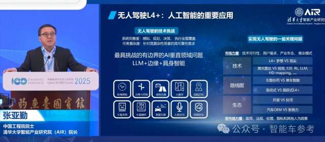 中国工程院院士、清华大学智能产业研究院(AIR)院长张亚勤在会上做出研判,表示2025年会是无人驾驶的ChatGPT时刻。