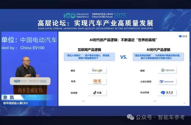 余凯认为,AI时代的产品逻辑跟互联网的产品逻辑有巨大不同,互联网时代数据很重要,因为用户需求是核心,需要流量。