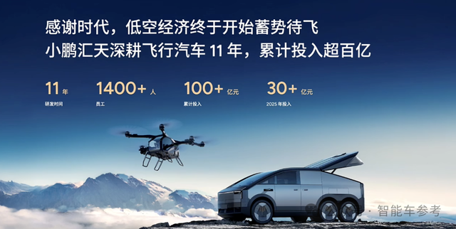 小鹏将飞行汽车视为具身智能生态的一部分,在该领域已投入11年,其中仅做飞机的研发员工就有1400人,累计投入已超100亿元,今年投入会超30亿元。