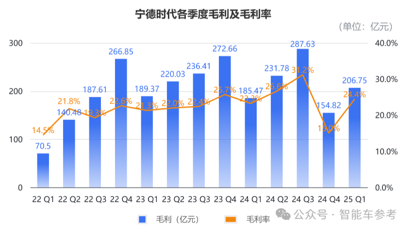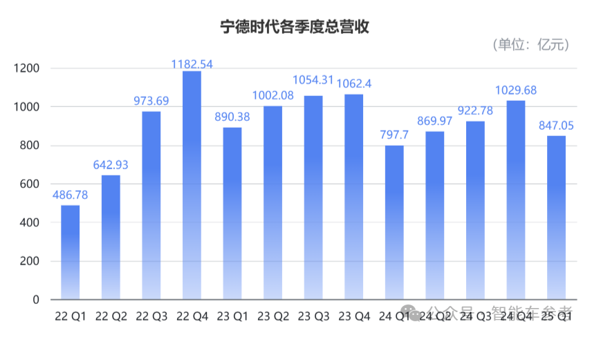宁德时代一季度率先交卷,终结连续五个季度收入下滑,2025年第一季度总营收847亿元,同比增长6.18%。
