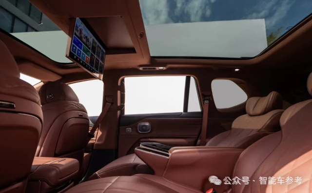 然后是舒适性,搭载了城区NOA让前排车主开着更节省精力,二排双零重力座椅让老人躺着舒服,上面的吸顶屏可以给孩子放个教学视频动画片,下面的冷暖箱还能给孩子热个奶,冰个汽水儿。