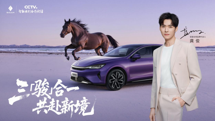 从车展现场我们能看到,品牌邀请演员龚俊担任全球代言人,通过“骏马精神-宝骏品牌-龚俊个人IP”的三重绑定,强化“愉悦出行”的价值主张。