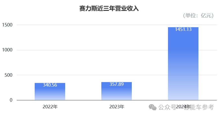而2024年,赛力斯营收首次突破千亿,达到1451.13亿元,同比暴涨三倍。