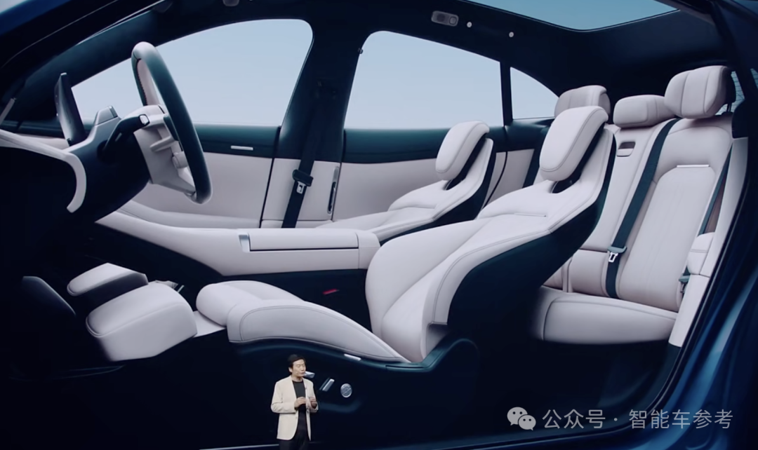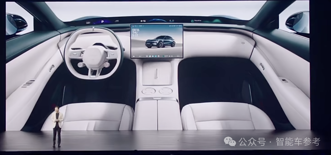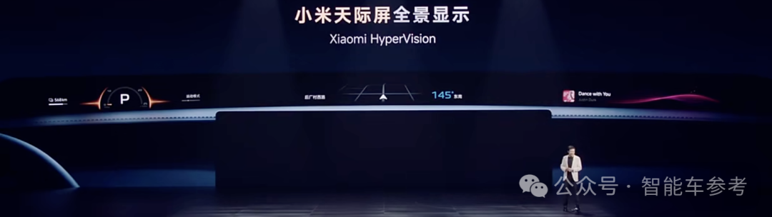 前排座舱增加了“天际屏”,1.1米超宽显示,应用了全景全面投影技术,雷总介绍“不是简单地做了一块屏”。