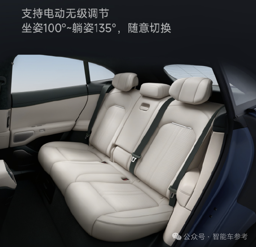 前排是双零重力座椅,支持123度调节,可以一键躺倒: