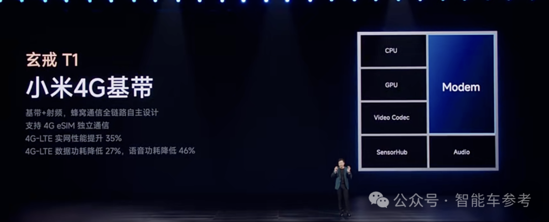 玄戒O1这颗SoC的其他组成部分,雷总在发布会没有提及。只是在介绍另一颗小芯片玄戒T1时,提及目前小米自研了4G基带。