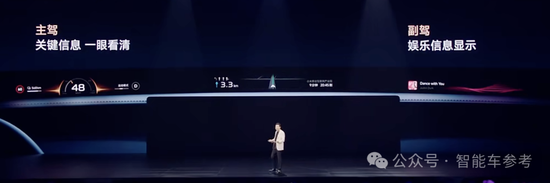 当你开车时,主驾方位能显示关键状态信息,副驾则显示的是娱乐信息。