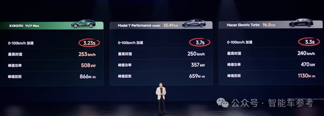 其他方面,小米YU7在空间、续航和性能等关键参数上,全面对标Model Y,实现领先。