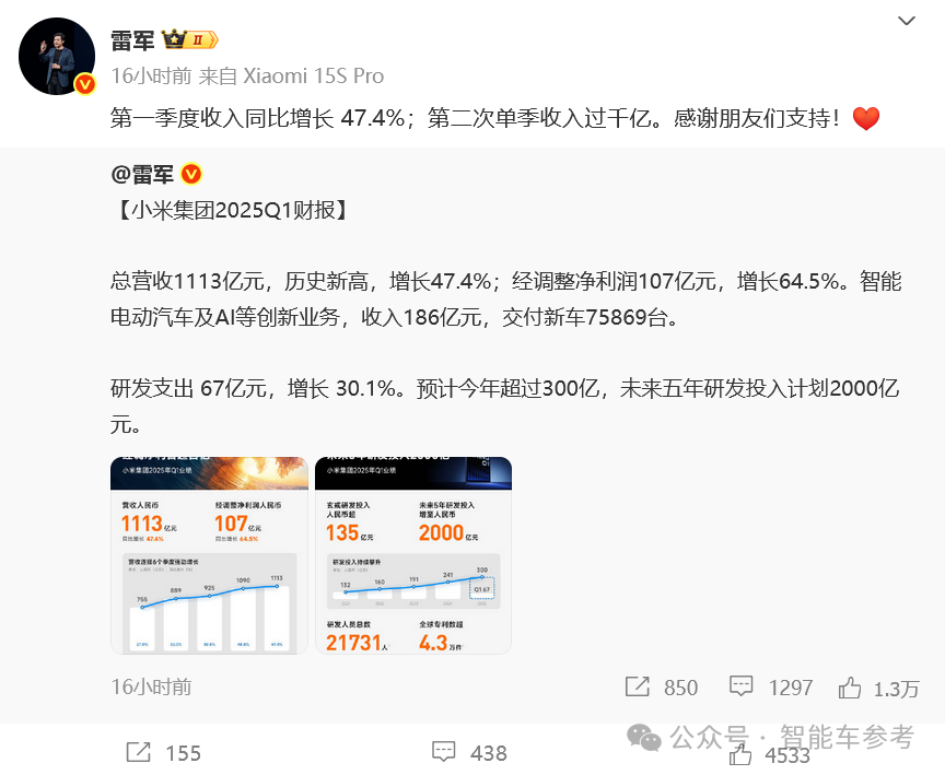 通过小米2025年Q1的财报,我们找出了数据层面的解释: