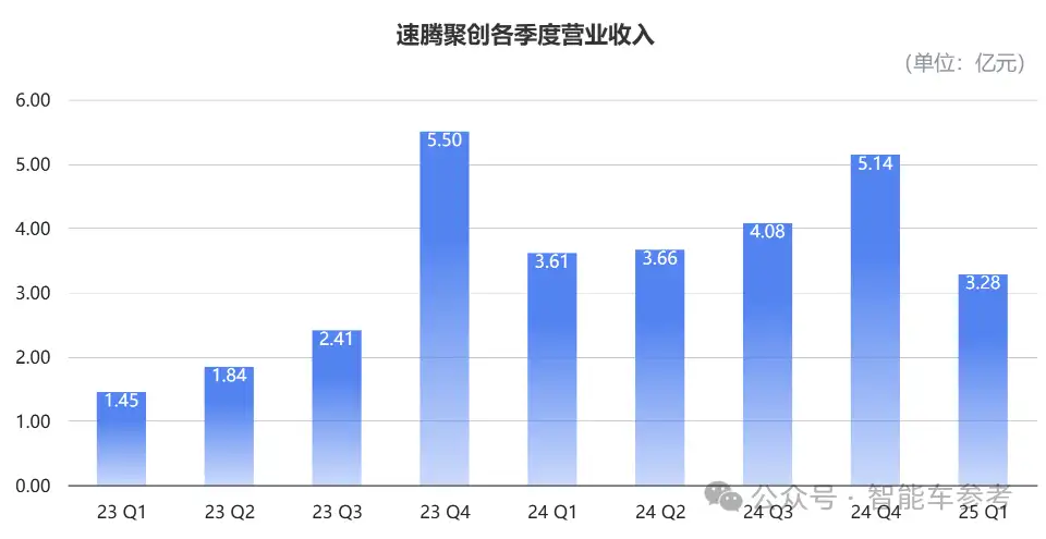 不过,交付总量下滑,还是直接导致速腾的营收下降。今年一季度,速腾总收入为3.28亿元,同比下降9.1%。