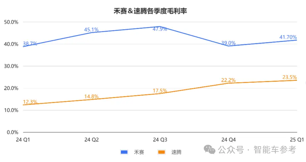 利润方面,禾赛一季度毛利率为41.70%,速腾则为23.5%。