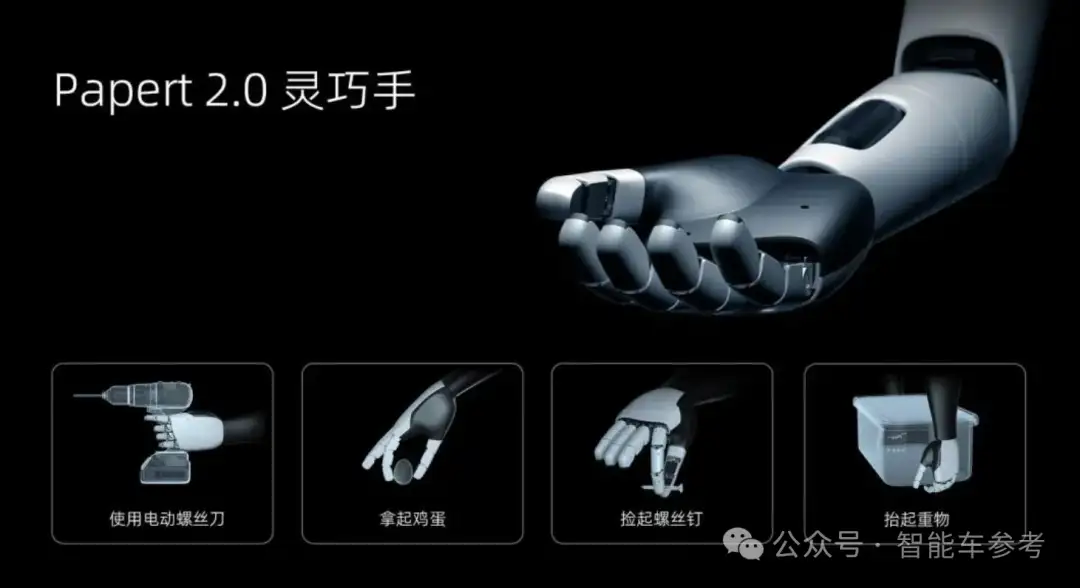 现在速腾的第二代灵巧手Papert 2.0已经面世,共有14个力传感器,具有20个自由度,可负载5公斤完成复杂的操作。