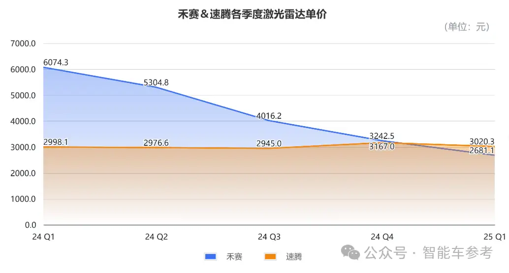 再对比单价,为方便参考,这里用总营收和出货量粗略计算,一季度禾赛的激光雷达单价约为2681元,速腾则为3020元。
