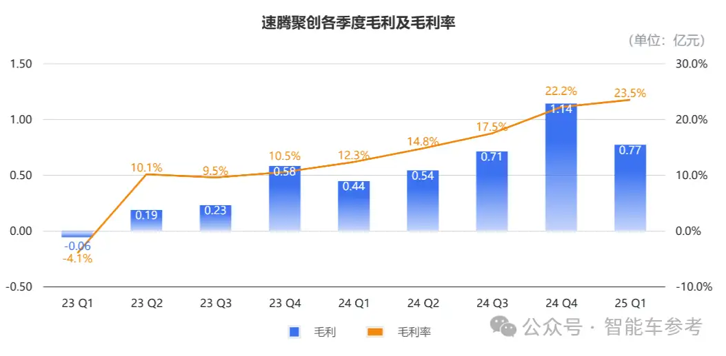 在利润方面,速腾在一季度表现提升。
