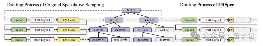 基于该框架,团队发现端侧模型投机采样的效率瓶颈在于草稿模型的语言模型输出头。