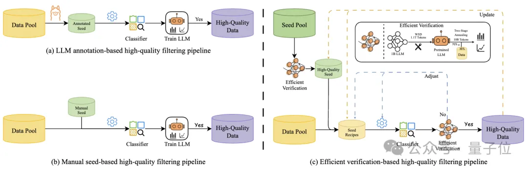 一类是基于规则的筛选,通过人为制定的规则来挑选出高质量的预训练数据,该方法覆盖面有限,仅能够过滤少量的低质量样本。一类是基于模型分类器的筛选,通过训练一个数据质量分类器来对数据进行筛选。