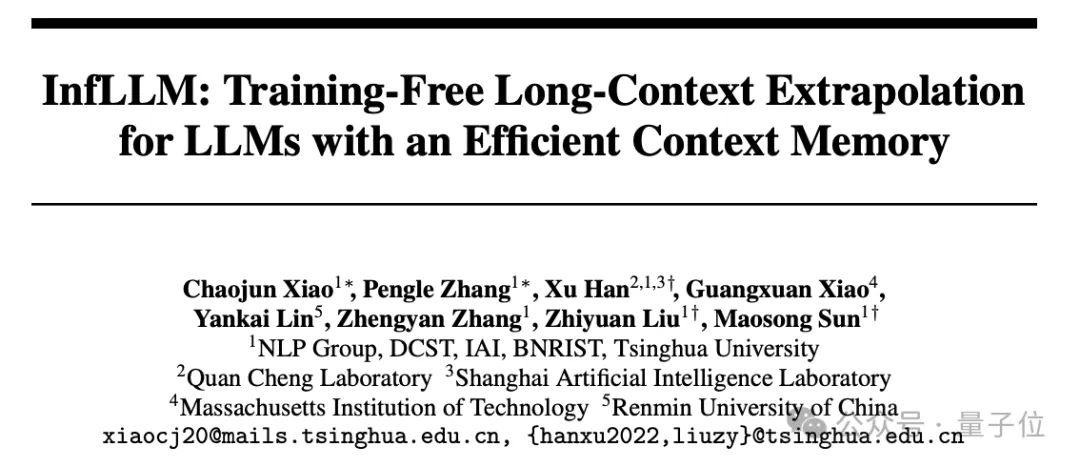 具体而言,在2024年2月,清华大学就提出了InfLLM算法。