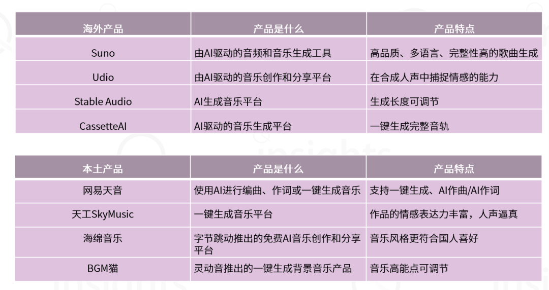 在具体应用当中,AI在音乐制作中的应用已经相对成熟,在母带处理、混音等工程含量较高的环节已经得到很好的应用,如Landr通过AI进行母带处理并由此形成稳定的商业模式。然而,在音乐创作中,AI的应用处在早期阶段。Suno属于这个赛道上第一家出圈的公司。昆仑万维、网易天音等是中国市场中的领先者。