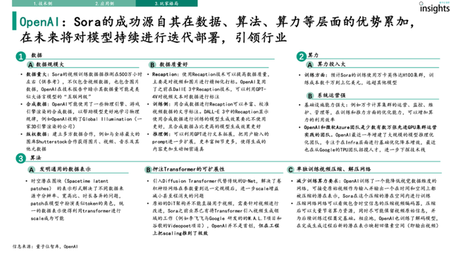 互联网公司:互联网公司的资源充足,从算力上来看,头部互联网公司一般有自建云服务,算力和基础设施层面优势比较大。从数据上来看,有视频内容平台的互联网公司优势较大,例如字节跳动、快手等公司,视频内容的推荐系统积累大量的视频数据,标注质量较好,分类细致准确,可以大幅助力模型训练。目前国内互联网在模型层和产品层追赶速度较快,海外互联网公司由于内容安全和的数据版权问题受到掣肘较大,产品化进展相对缓慢,但实验性项目和前沿研究较多。