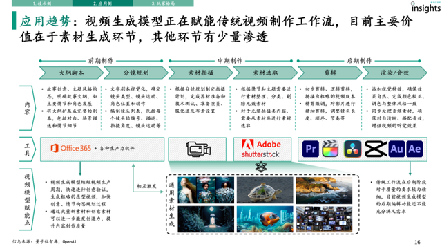 - AI视频生成正在赋能传统视频工作流,目前主要价值在于素材生成环节