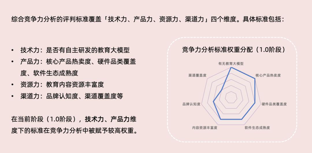 互联网AI公司在技术能力和产品创新能力上领先,教育科技公司在内容资源和教育服务上更具竞争力,教育硬件公司则在下沉市场和供应链管理上占据一定优势。