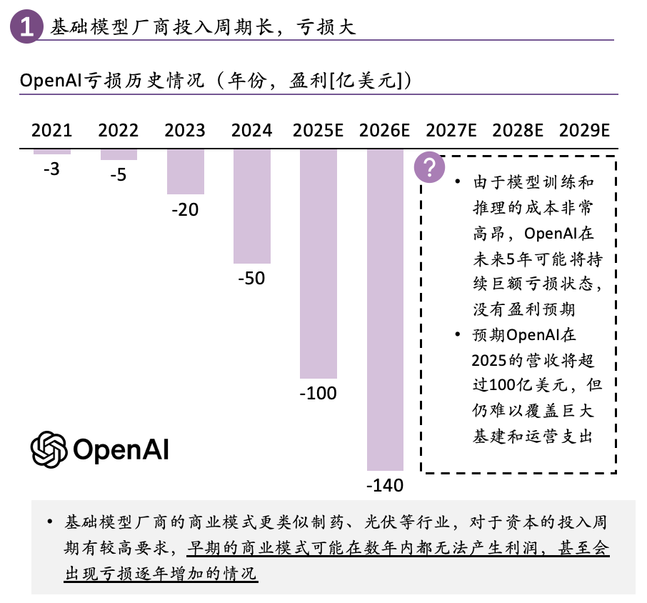 互联网时代应用有很多关键要素可以构建护城河,包括数据飞轮、网络效应、迁移成本、规模效应、用户心智等,但已经不再适用大模型的业务模式。目前为止大模型的业务模式没有清晰护城河,需要厂商进行持续投入参与竞争,且对于资本投入的量级和周期长度有极高要求。