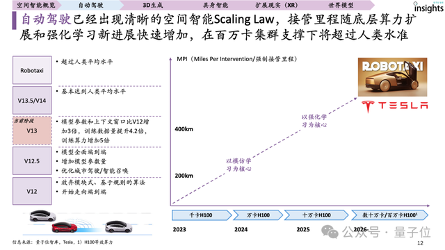 目前,自动驾驶领域已经出现属于空间智能的Scaling Law:可接管里程随底层算力扩展和强化学习新进展快速增加。