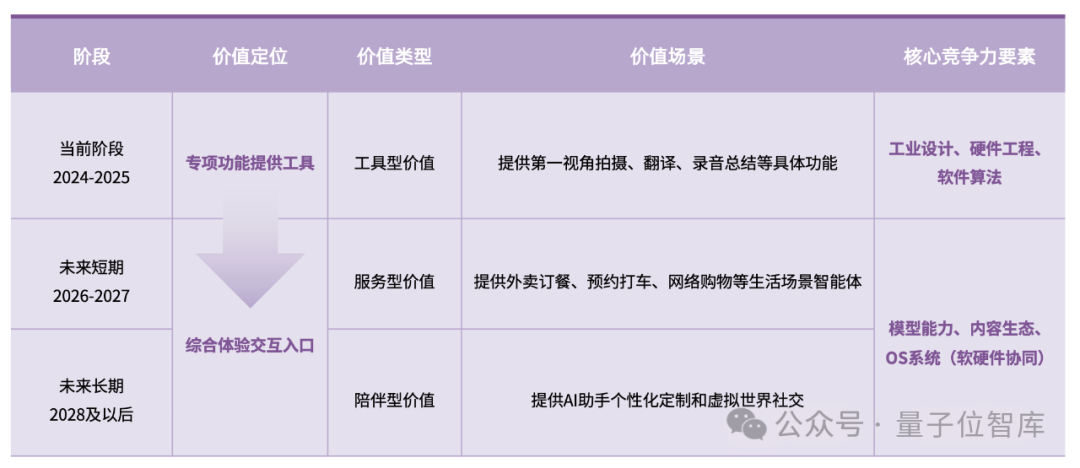 在AI眼镜应用价值发展的不同阶段,AI眼镜的竞争力要素有不同的偏重。