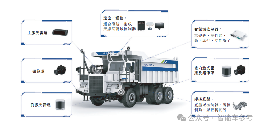 这类解决方案背后的核心技术,分软硬件来看,硬件的无人驾驶矿卡,主要是无人驾驶系统(ADS)、线控底盘平台、电子电气架构(EEA)在支撑。
