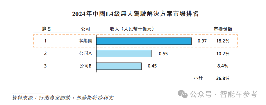 是的,占据中国L4级无人驾驶市场18.2%份额,超萝卜快跑、领先小马智行、文远知行的第一名。