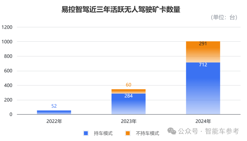 招股书显示,2022年到2024年,易控智驾的活跃无人驾驶矿卡数量分别为52台、308台和1003台,复合年增长率为339%。