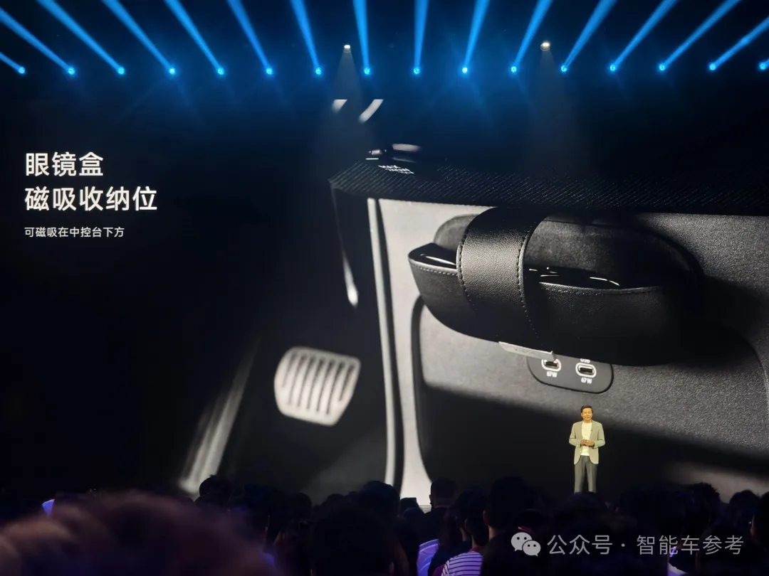 后排新增控制屏幕支持拆卸,还有4.6L的小冰箱。座椅下面是抽屉可以储物,雷军表示“这是整车最让自己称赞的设计”。