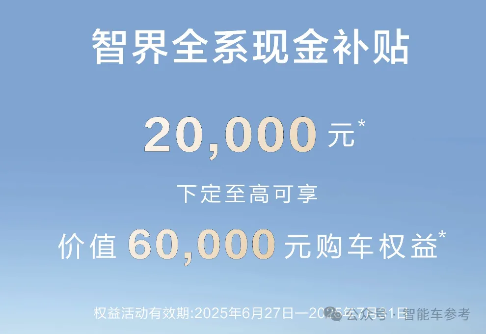 就在小米YU7上市当天,华为智选车的智界品牌发布了新的优惠政策,限时2万元现金补贴,至高5.4万元购车权益。