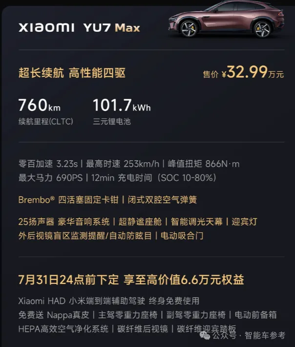 综合来看,YU7不是简单的把SU7给“拉高”了,各方面都有所增强,反映在定价和配置上更是如此: