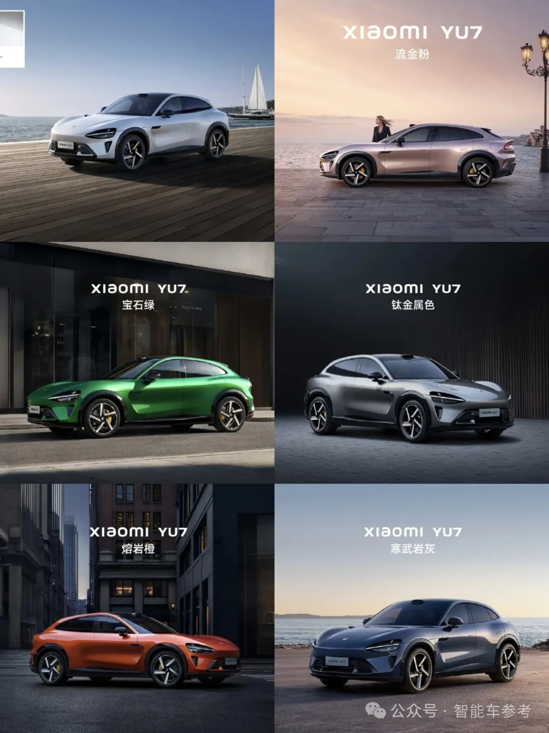 小米YU7发布会上新揭晓了深海蓝、丹霞紫、影青色等3种新配色: