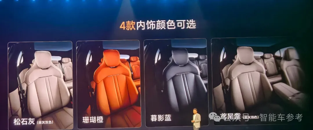 前备箱容积是14L,支持电动和声纹识别控制开启。外观的其他方面预热很久了,比如真风道,所以不再过多介绍,咱们直奔内饰,有四种配色: