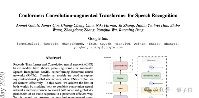 同样备受业界认可的还有Conformer模型,该模型基于Transformer架构改进而来,成为语音识别技术的重要进展。这是余家辉与吴永辉共同开发的成果。