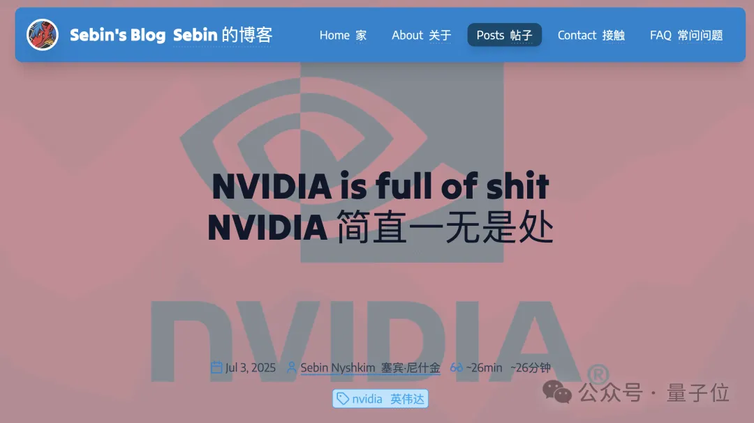 这篇近6000字的博文当中,博主Sebin把英伟达从产品到销售策略一整个批判了一番,具体指控包括但不限于: